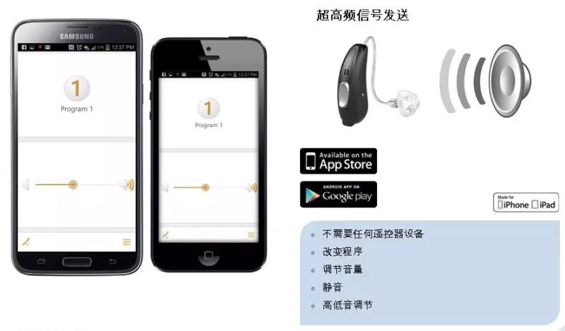 力斯顿助听器4C产品所应用的聆控手机APP,不需要借助任何第三方设备,只需下载力斯顿聆控APP,即可将您手中的手机变成助听器的遥控器,随时随地轻松改变助听器的音量,程序,音调及让助听器静音,无需再在助听器上进行复杂操做。力斯顿助听器所应用的手机聆控APP,界面简洁,实用,适合各个年龄层的听障人士。